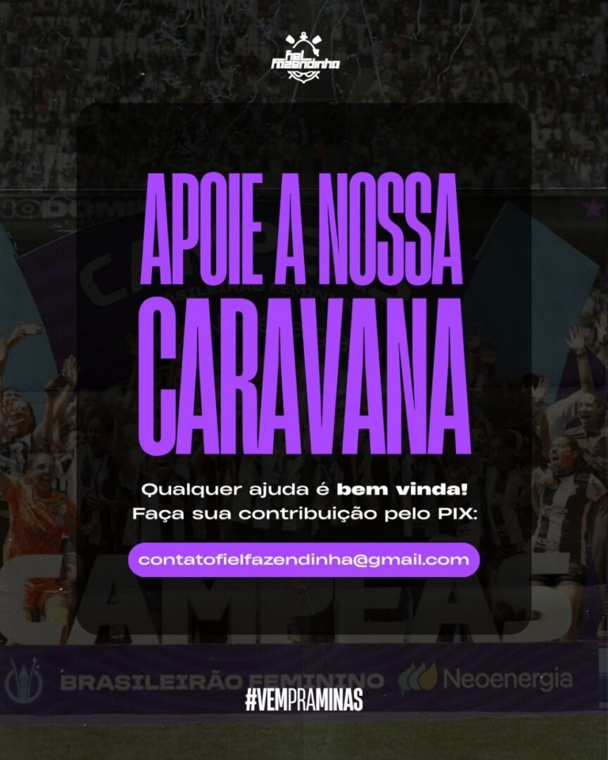 O grupo mantém aberta a campanha de arrecadação, que busca reduzir os custos com o aluguel do transporte. Doações podem ser feitas via PIX (contatofielfazendinha@gmail.com – Banco C6, em nome de Beatriz). Já quem deseja participar da caravana deve entrar em contato pelas redes sociais da torcida. O valor estipulado é de R$ 260 por pessoa, referente apenas ao deslocamento.