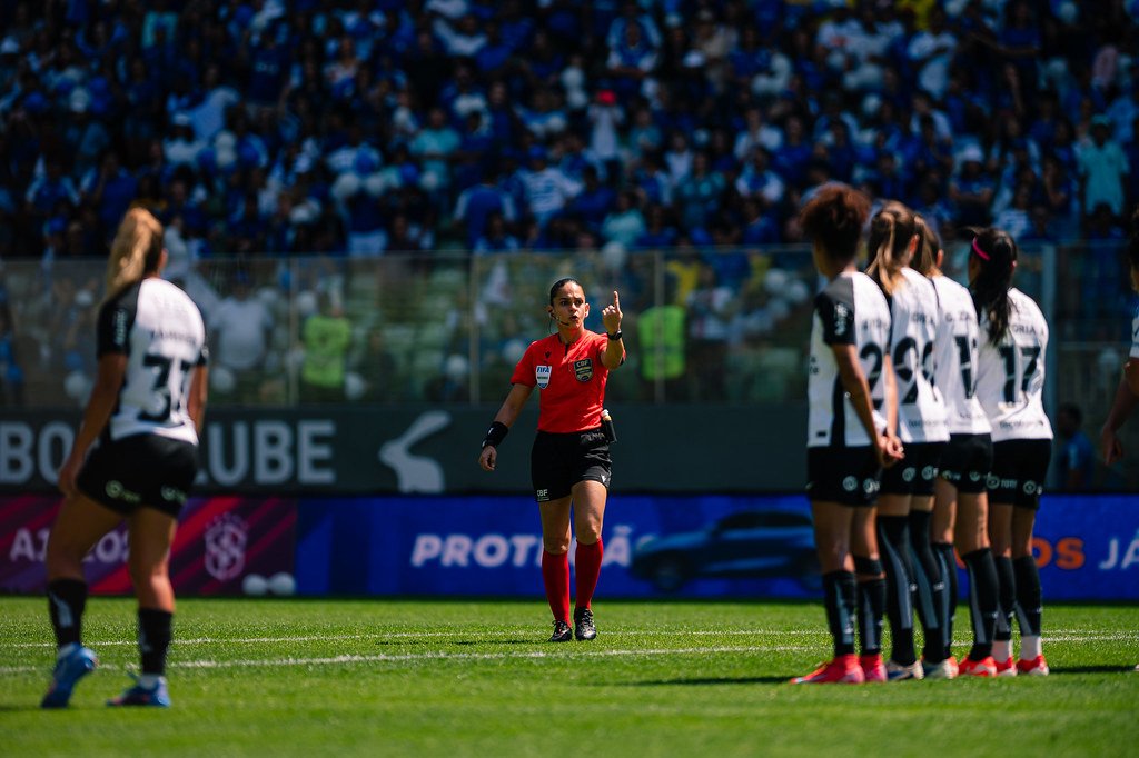 Árbitra minimiza cotovelada em zagueira do Corinthians na final do Brasileirão Feminino.